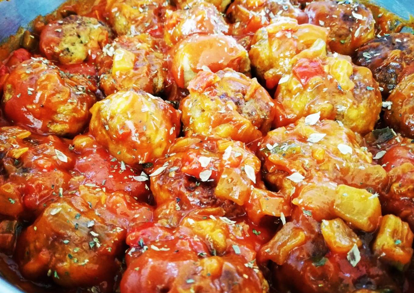 - En una cazuela plana echar fritada y poner encima las 22 alb贸ndigas.馃挭 Verter por encima un poco de 馃崊 frito y aromatizar con or茅gano. Darles un hervor y a disfrutar.