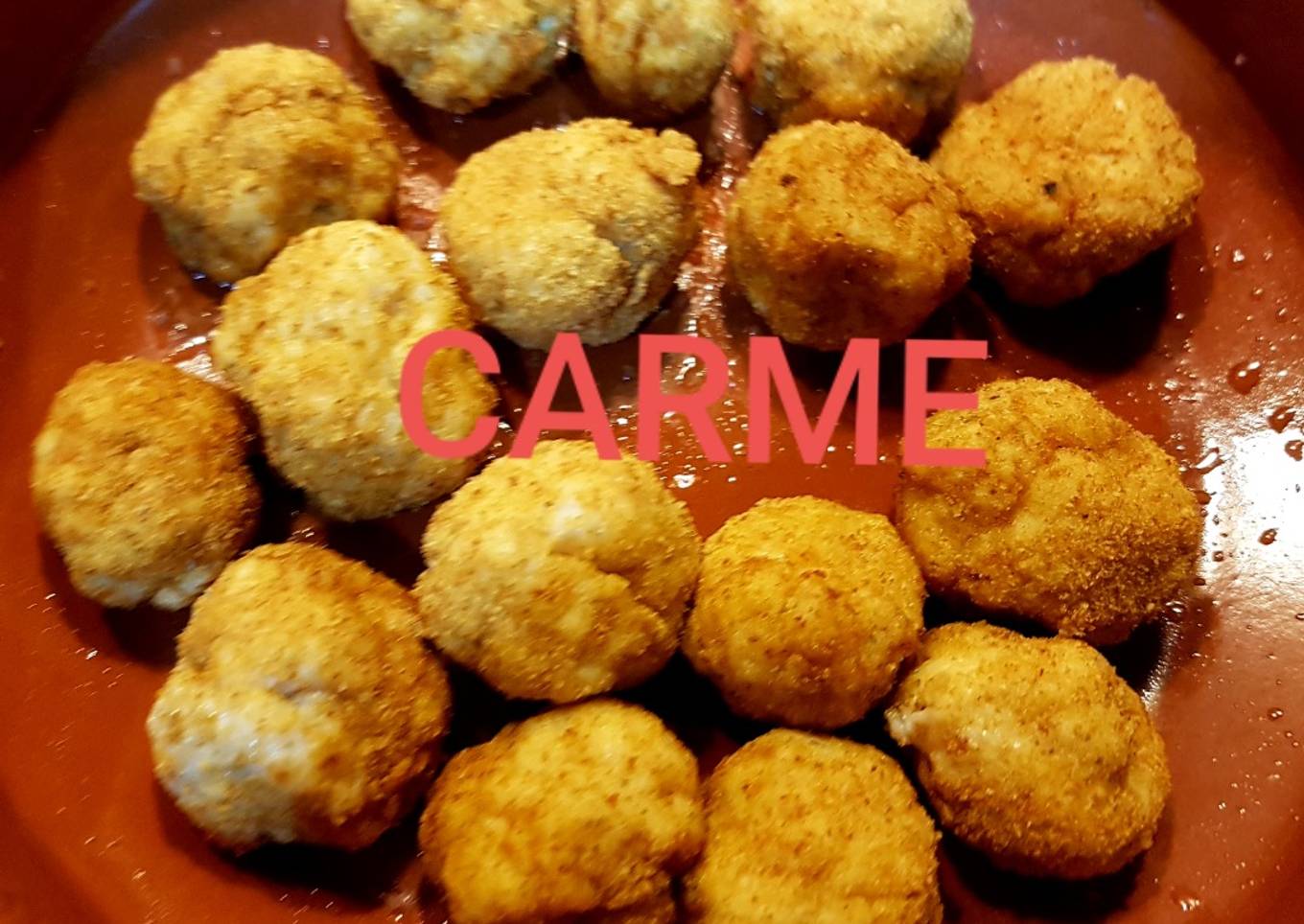 - Ir formando bolitas y pasando por pan rallado, hasta acabar la masa. Poner unas gotas de aceite en un recipiente apto para microondas, esparcir el aceite con un pincel y poner las albondiguillas, separadas para que no se enganchen