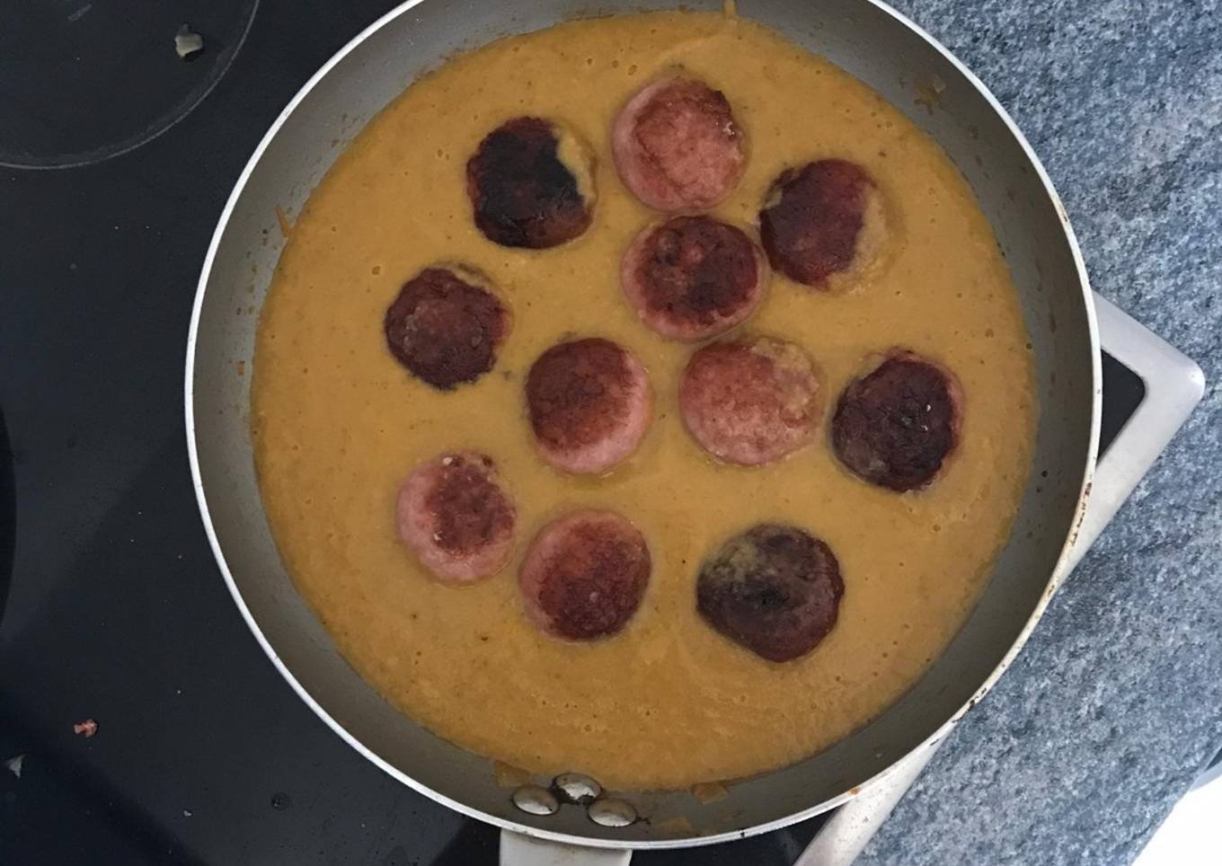 - Opcional podría ser darle un toque de calor a las albóndigas en la misma sartén junto con la salsa. Como podéis ver en la foto principal.