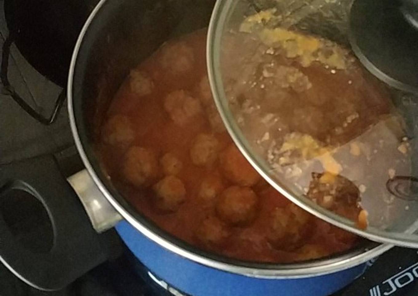 - Se añaden las albóndigas a la salsa y se dejan cocinar unos 30-40 minutos. Se prueba una para verificar que están cocinadas y por si hiciera falta rectificar la sal.