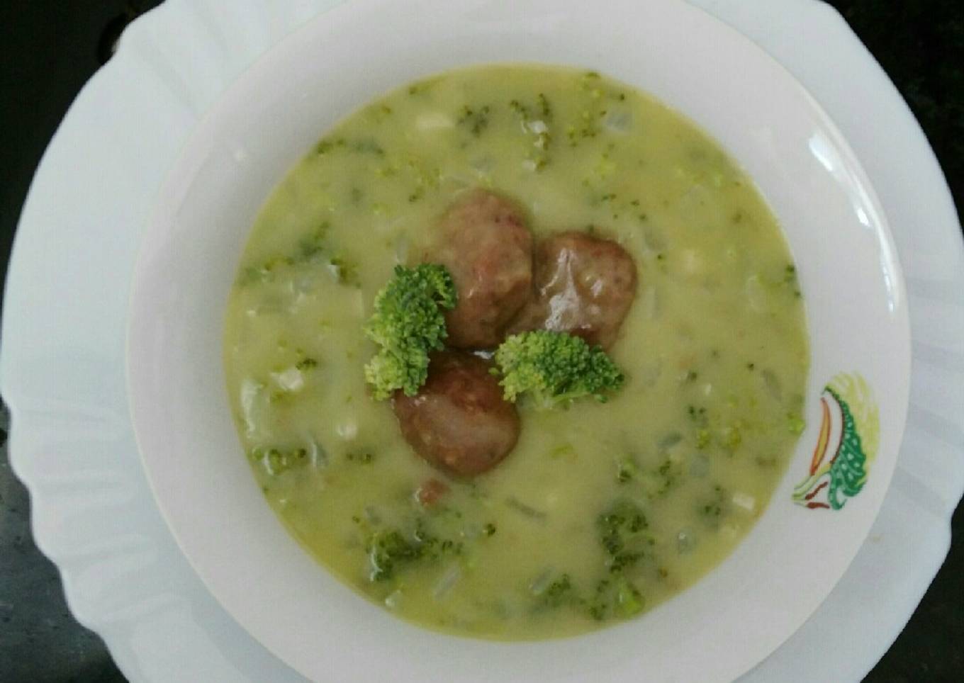 Sopa de brócoli y quinoa con albóndigas de carne de cerdo