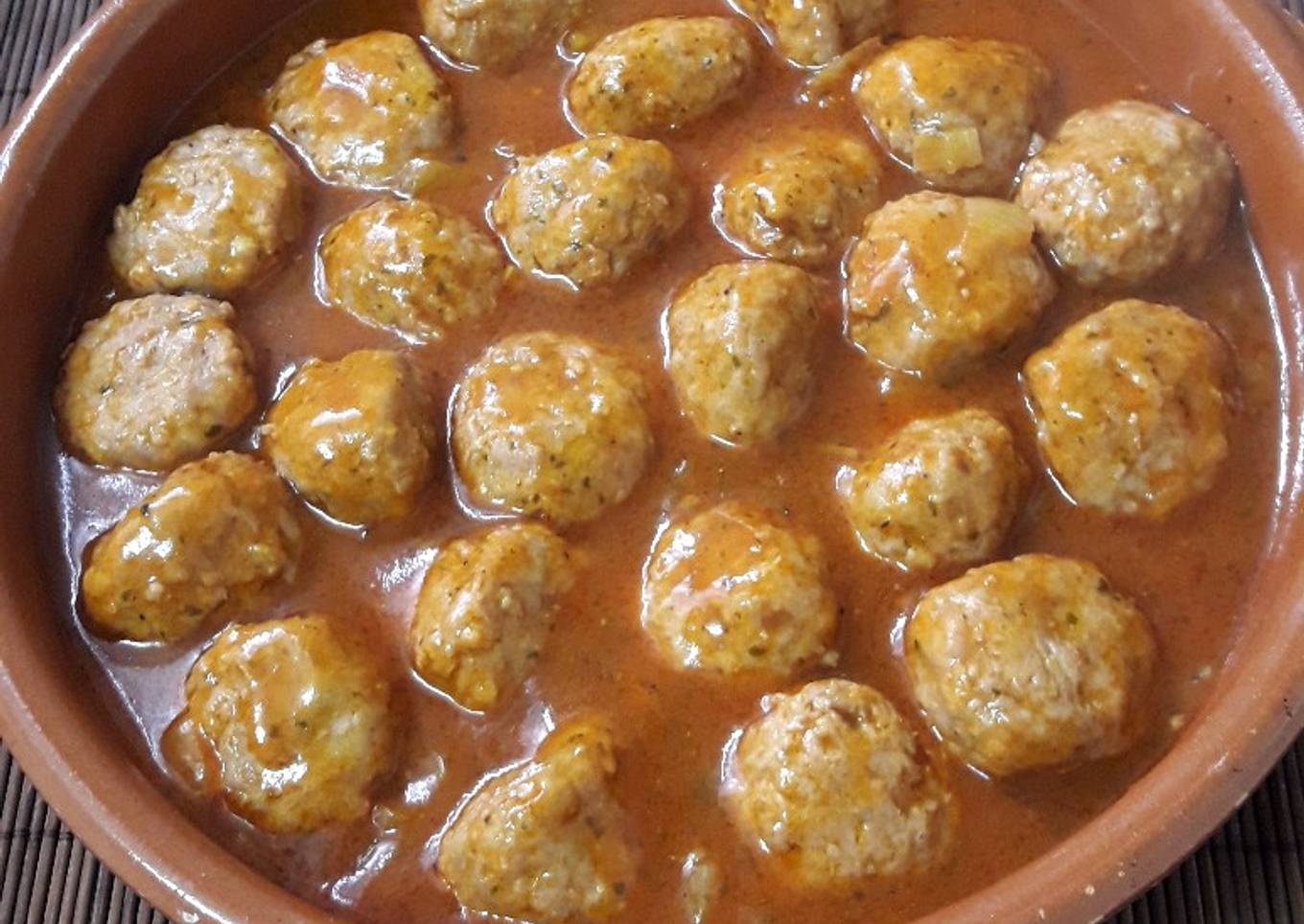 - Mientras se hacen las albóndigas con la cazuela tapada y a fuego medio bajo mantenemos al fuego unos 20 minutos hasta que la salsa haya reducido y esté bien ligada. Servimos las albóndigas calientes y listas para comer.