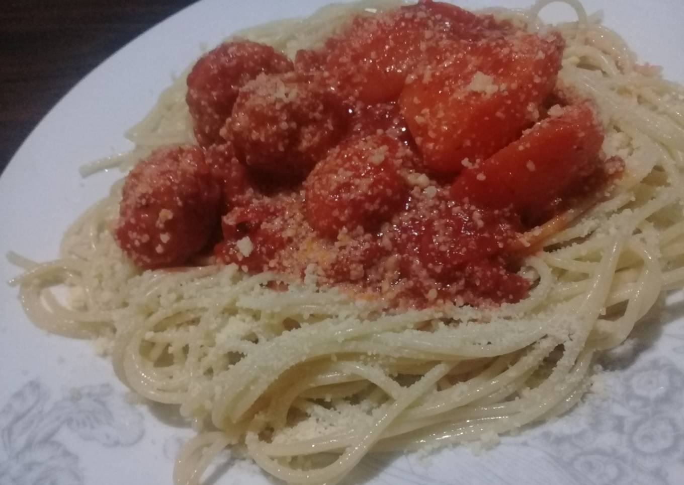 - Así quedó mi salsa con albóndigas de milanesa de pollo.