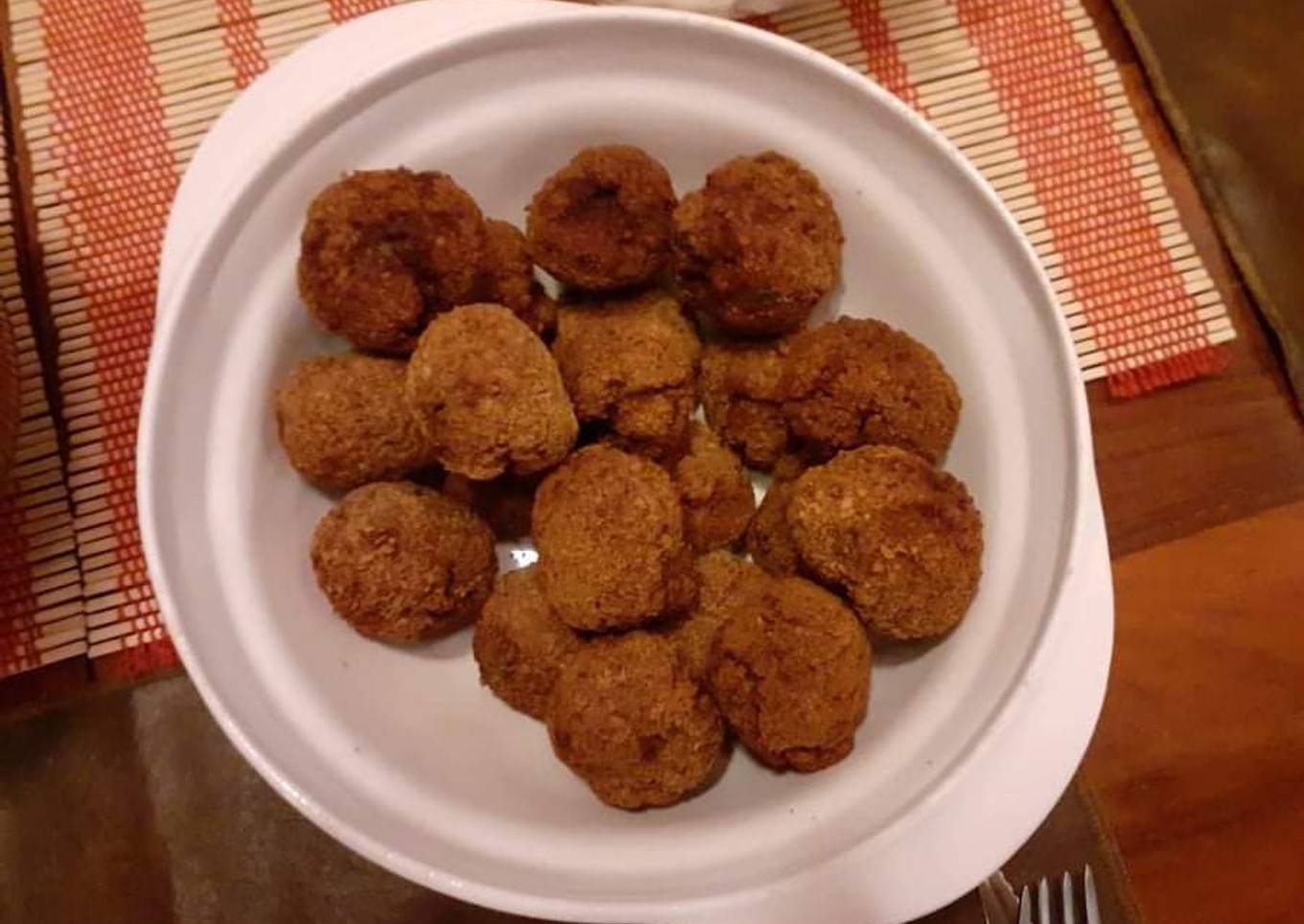 - Formamos peloticas y las pasamos por harina, se fríen hasta que estén doradas y las reservamos. (quedan como la foto)